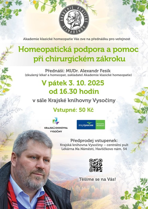 Homeopatická podpora a pomoc při chirurgickém zákroku. Přednáška se zakladatelem Akademie klasické homeopatie MUDr. Alexandrem Fesíkem.