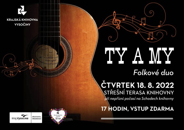 Zveme vás na koncert folkového dua Vladimíra Martince a Evy Krejčí Ty a My, který se uskuteční ve čtvrtek 18. srpna 2022 v 17:00 na střešní terase Krajské knihovny Vysočiny (v případě nepříznivého počasí na Schodech KKV).