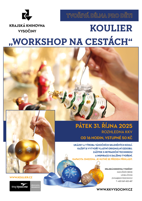 Kreativní dílna pro děti zaměřená na výrobu vánočních skleněných koulí. Součástí programu budou ukázky malování na sklo, po nichž si každý účastník vytvoří vlastní originální ozdobu. Děti si kromě výrobku odnesou i zkušenost s netradiční výtvarnou technikou a inspiraci k dalšímu tvoření.