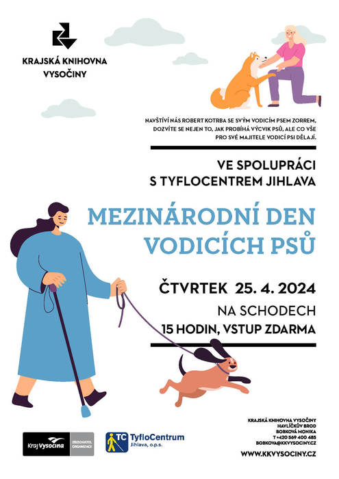 Ve spolupráci s TyfloCentrem Jihlava pořádáme osvětovou přednášku. Navštíví nás Robert Kotrba se svým vodicím psem Zorrem, dozvíte se nejen to, jak probíhá výcvik psů, ale co všechno pro své majitele vodicí psi dělají.