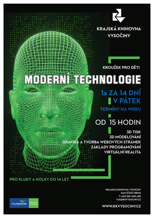Pro všechny zvídavé holky a kluky jsme otevřeli nový kroužek Moderní technologie. Určen je dětem do 14 let, koná se 1x za 14 dní v pátek.