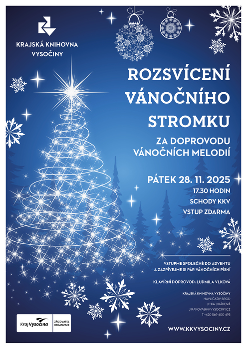 Srdečně vás zveme na rozsvícení vánočního stromu. Vstupme společně do adventu a zazpívejme si pár vánočních písní. Klavírní doprovod: Ludmila Vlková.