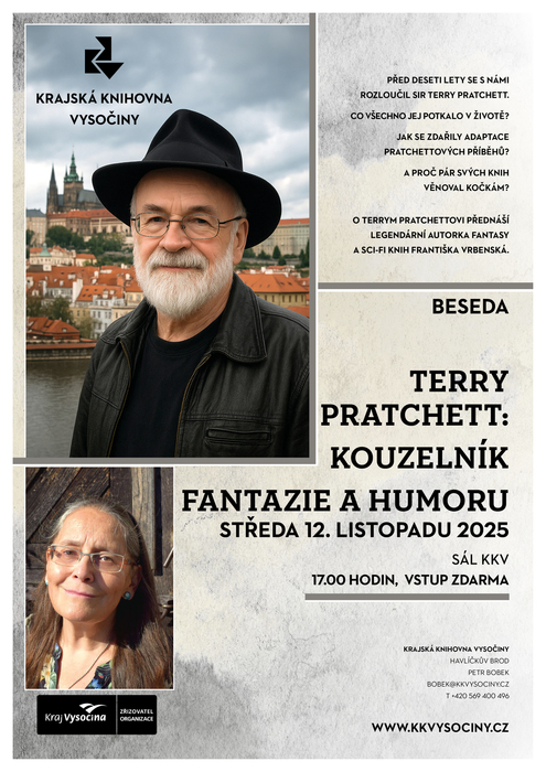 Před deseti lety se s námi rozloučil sir Terry Pratchett, nejvýznamnější ze spisovatelů, kteří spojili fantastiku s humorem. Do jeho portfolia patří kromě cyklu Zeměplochy řada úžasných románů včetně kultovních Dobrých znamení (s Neilem Gaimanem). Díky kongeniálním překladům Jana Kantůrka poznal Česko. Často sem přijížděl, našel u nás inspiraci a zanechal svým fanouškům nezapomenutelné historky. Co všechno jej potkalo v životě? Jak se zdařily adaptace Pratchettových příběhů? A proč pár svých knih věnoval kočkám? O Terrym Pratchettovi přednáší legendární spisovatelka sci-fi a fantasy knih Františka Vrbenská.