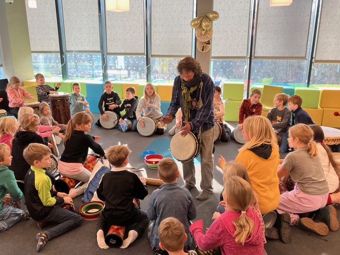 Úvod > O knihovně > Fotogalerie > Bubnování s Petrem Šušorem