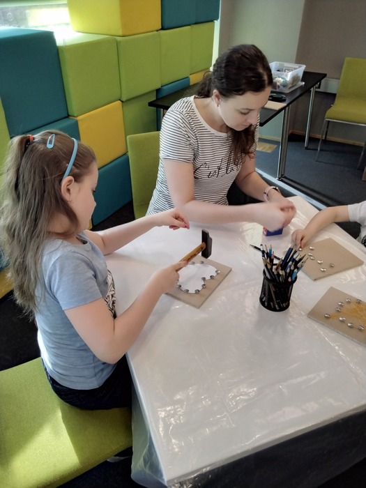 Úvod > O knihovně > Fotogalerie > Duhové hrátky - obrázky z připínáčků