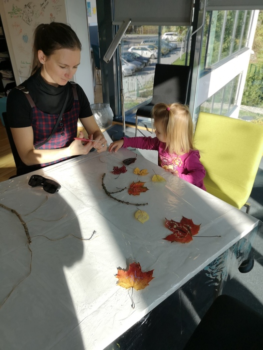 Úvod > O knihovně > Fotogalerie > Mozaika - závěsné podzimní dekorace z listů