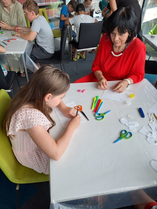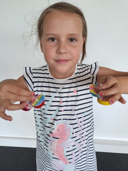 Úvod > O knihovně > Fotogalerie > Prázdninové duhové pátky - káča z víčka