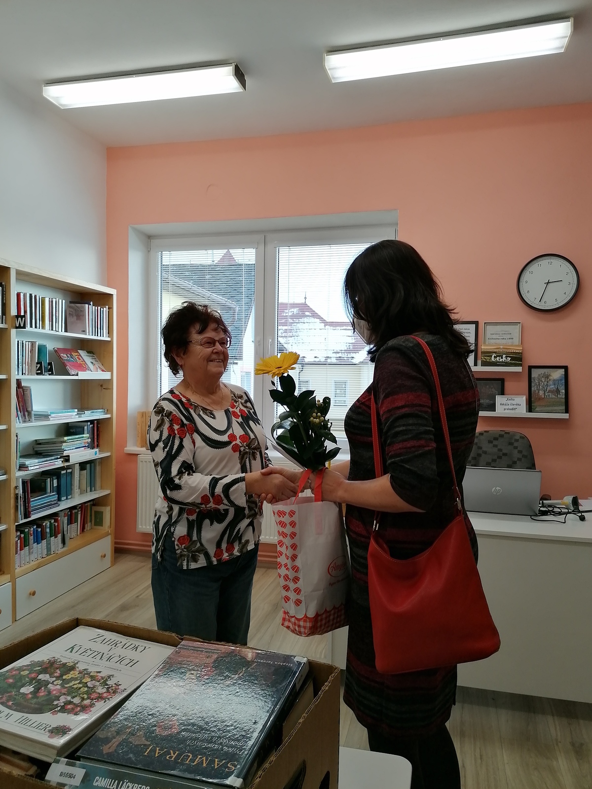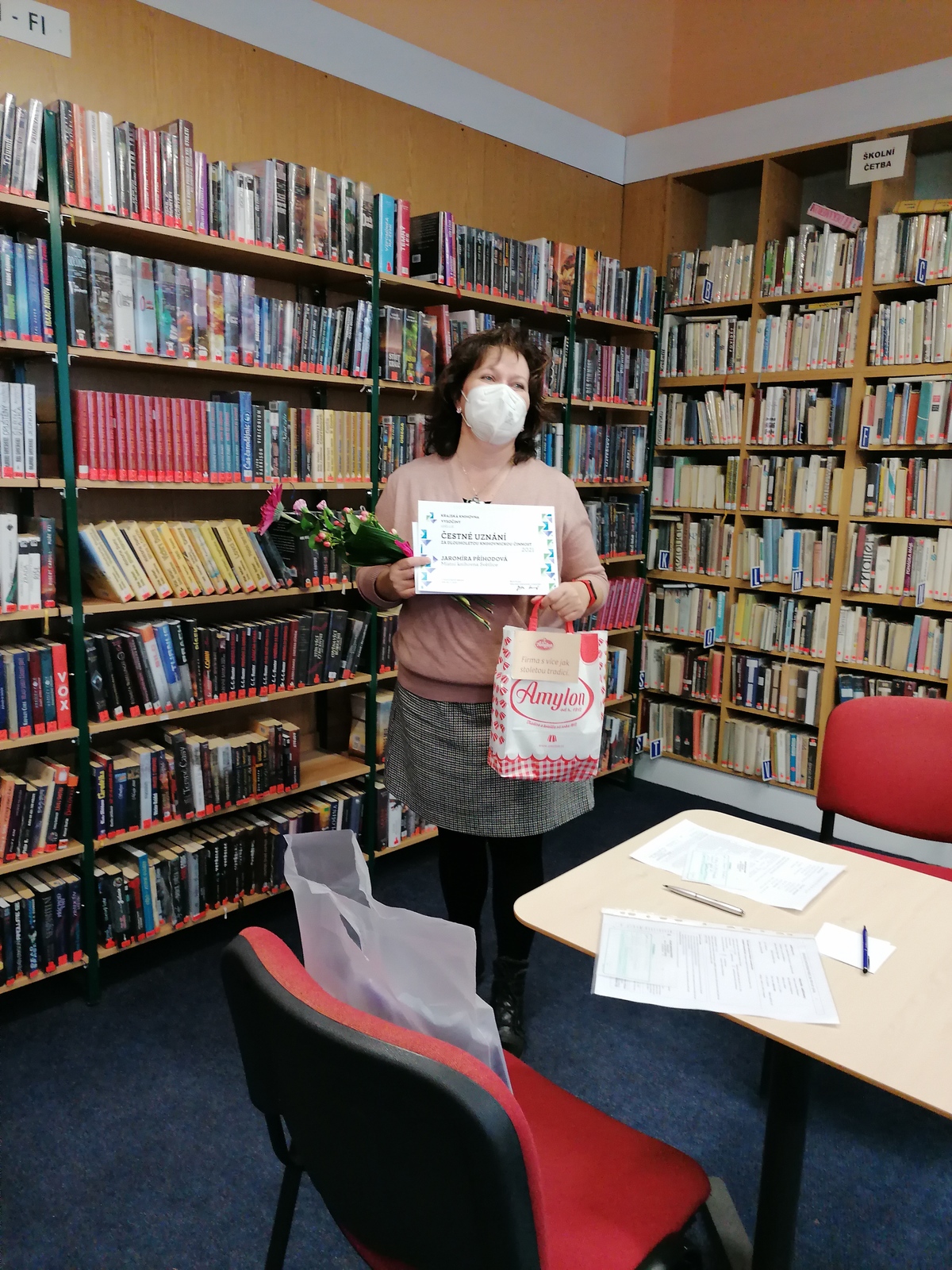 Stejně jako vloni však protiepidemická opatření nedovolila v plánovaném termínu slavnost uskutečnit. Abychom tuto skutečnost knihovníkům alespoň částečně vynahradili, všechny oceněné knihovníky jsme objeli a diplom spolu s dárky a květinou jim osobně předali. Současně jsme je i vyfotili a sestavili z jejich fotografií tablo jako připomínku jejich úspěchu.