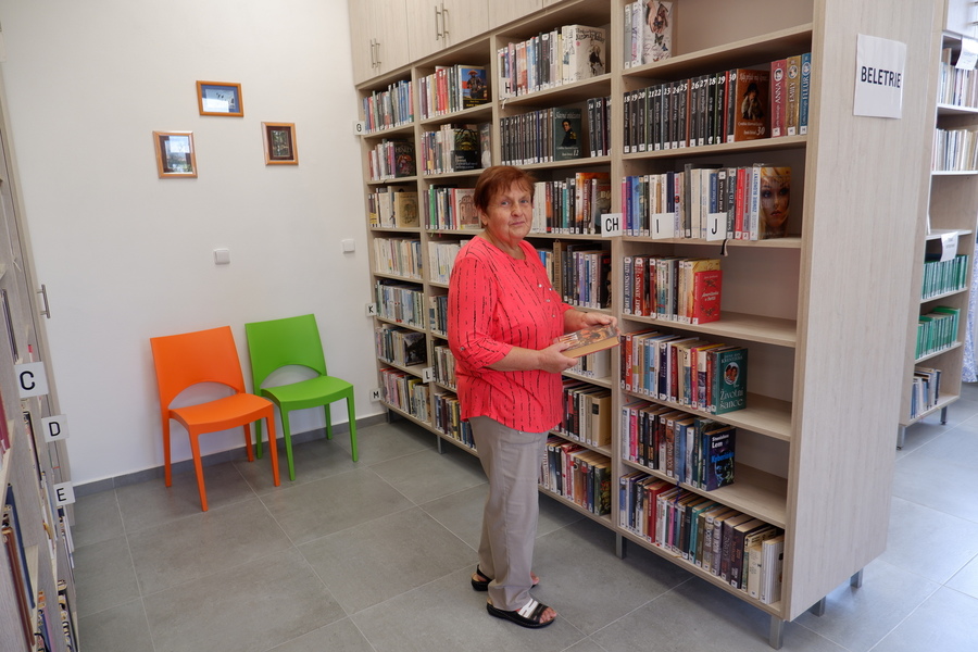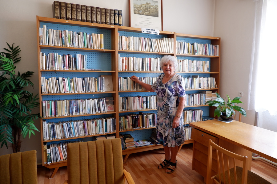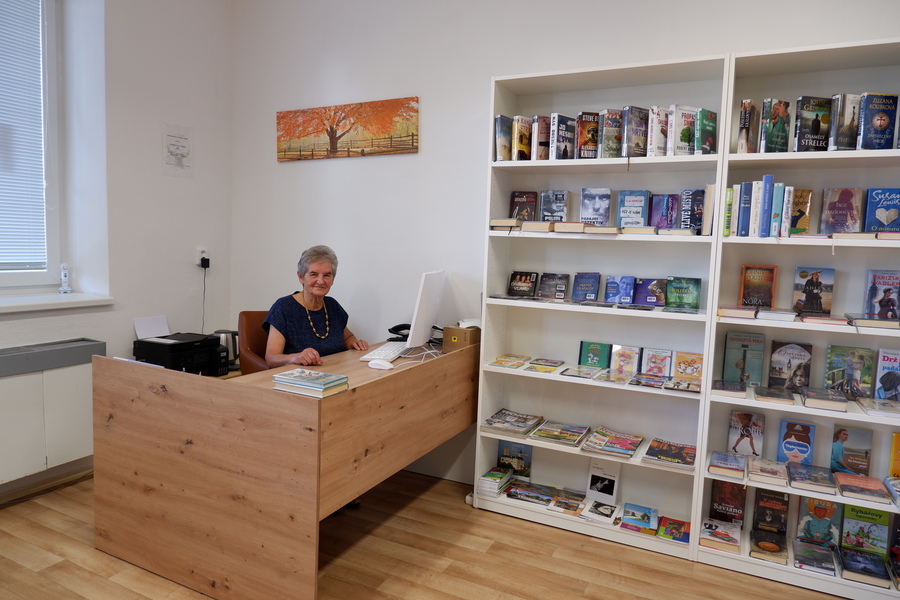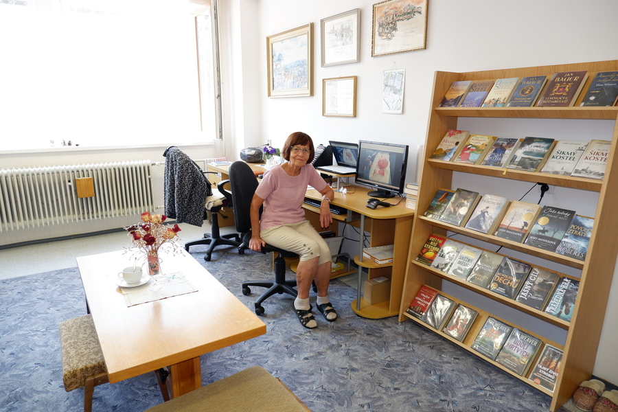 Paní Čechová vede zdejší knihovnu od roku 1974, tedy 48 let. Za tu dobu se změnil způsob knihovnické práce i složení čtenářů. Dříve četly hlavně děti, nyní to jsou dospělí, spíš vyššího věku. Paní Čechová také vzpomíná na přebalování knih z papíru do folií, vyřazování knih za normalizace, také postupné ukládání knihovního fondu do systému Clavius a Tritius.
